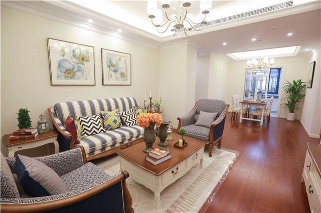 简欧风的时尚,是这片空间的气质。单人沙发、双人沙发,茶几的“客厅铁三角”,摒弃了传统欧式纹饰的繁杂,用色素雅、线条流畅,借用现代设计的巧思,融入居者情感,打造出了一个诗意的居心地。