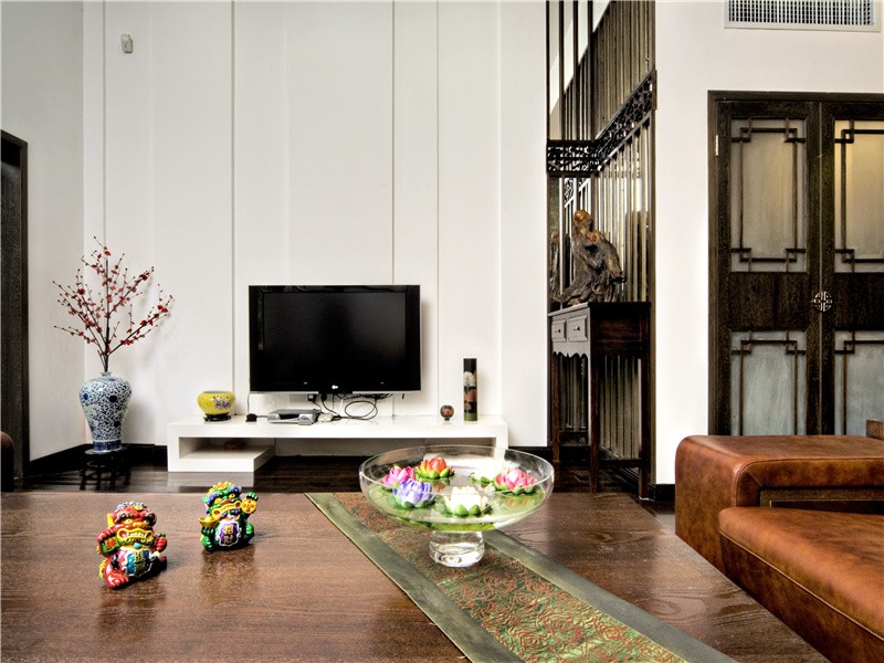 室内装饰上,选择了以适合现代人生活的简洁手法,只在适当的地方采用了中式传统漏花窗来加以装饰,以增强室内整体氛围