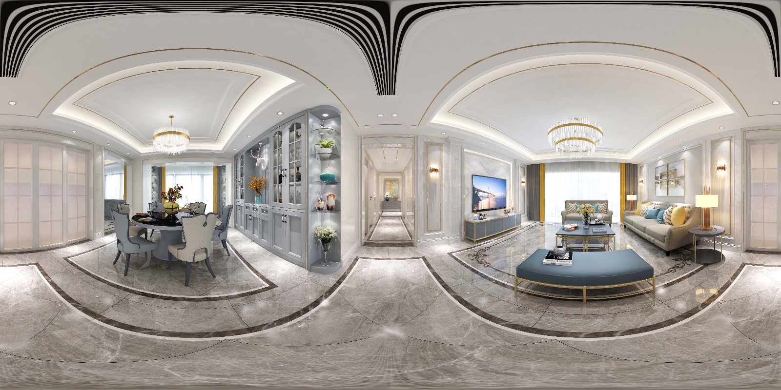 客厅以素雅的色彩为基调,配合简约美式的家具及精美的装饰摆件,完美地诠释了现代美式的奢雅魅力。