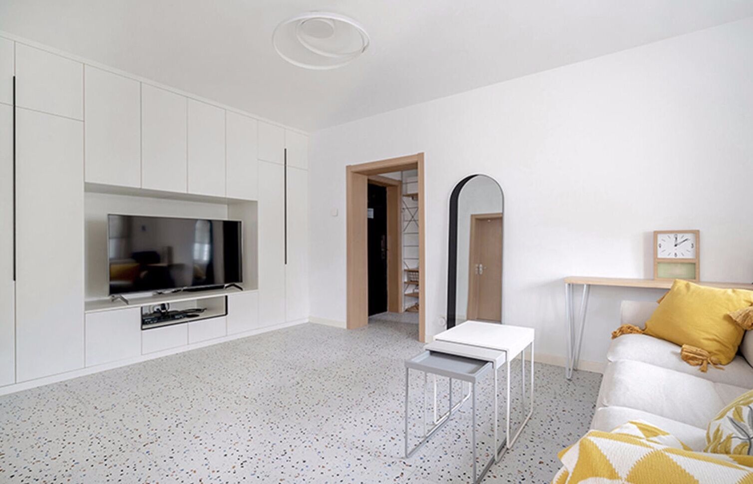 利用客厅的进深,在沙发对面增加了一组储物柜,增加储物。