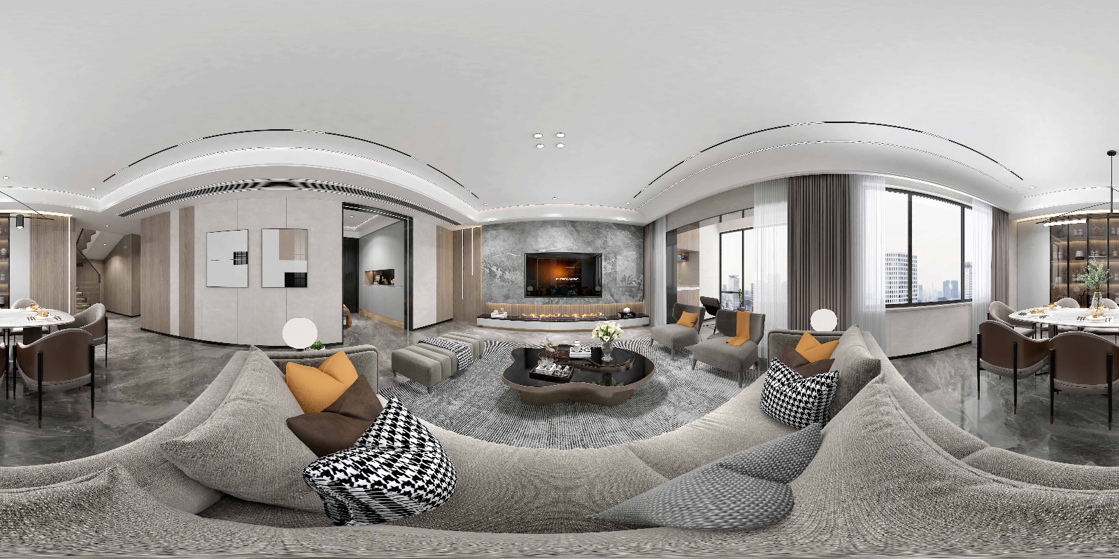 客餐厅采用大横厅的设计,大空间尺度的客厅和景观阳***美融合。