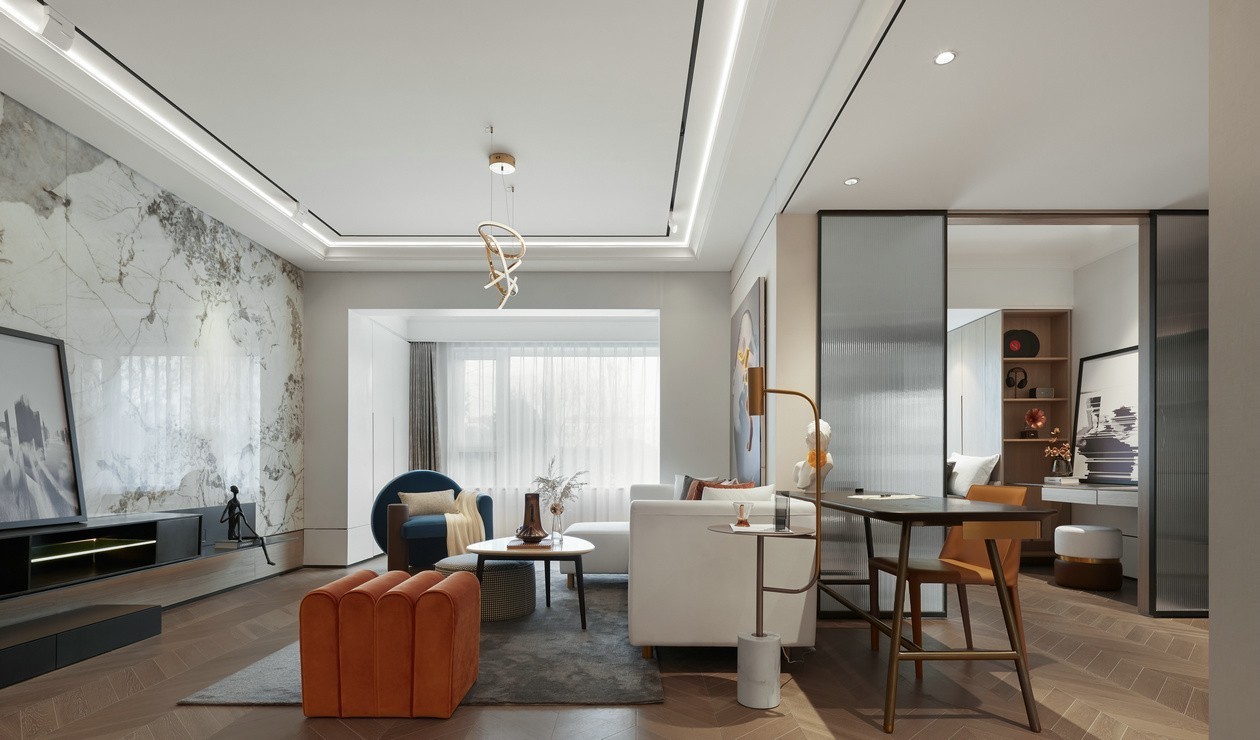 线性灯打亮了空间,让木饰面不显的那么木木的,让空间的点、线、面呼应起来!
