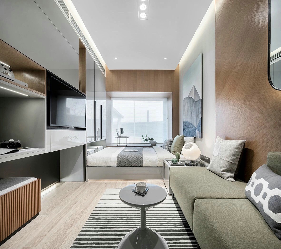 优美简洁的线条,简洁实用的家具,利用灯光的运用设计,营造舒适又充满灵感的生活空间。
