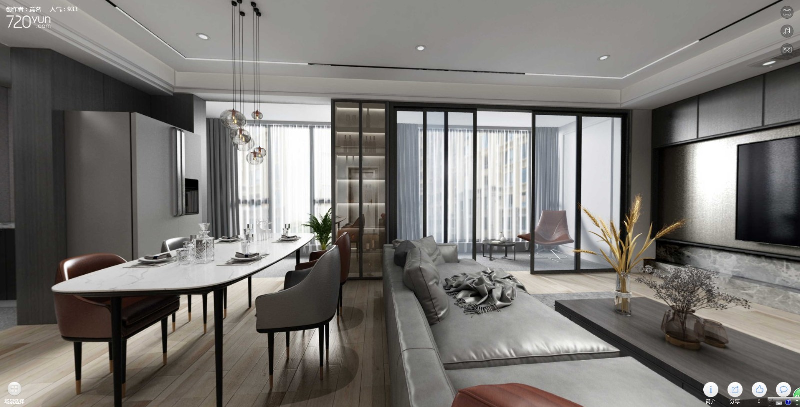 横厅的设计让整个空间的视野更加的开阔,