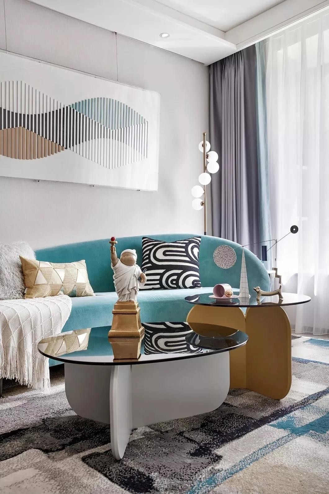 客厅整体空间以现代风的硬装基础,布置上色彩丰富的艺术感软装家具,带来的空间感充满着文艺与优雅的气质。