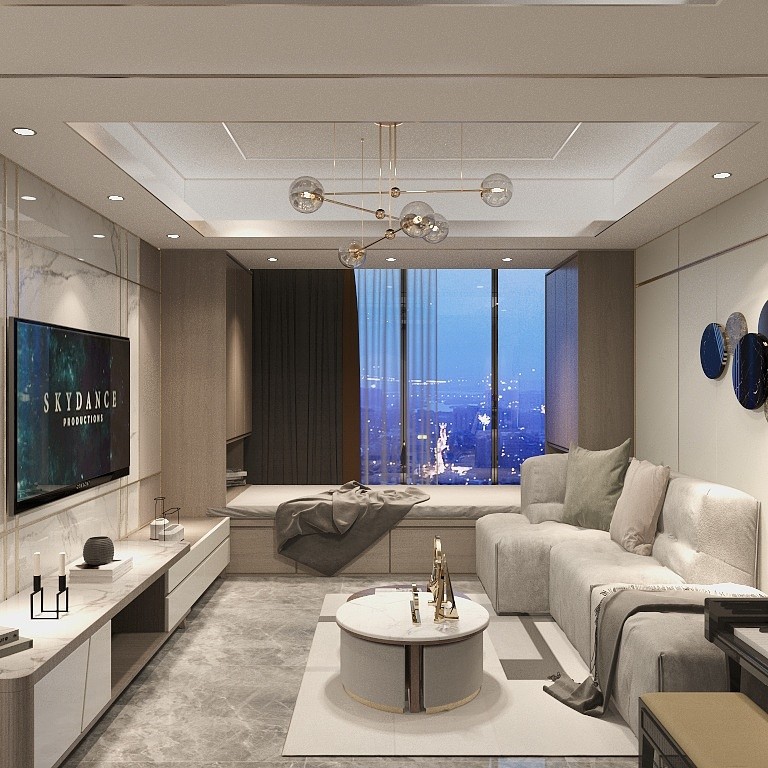 客厅增加榻榻米提高休闲感。增加房子储物以及休闲区域。