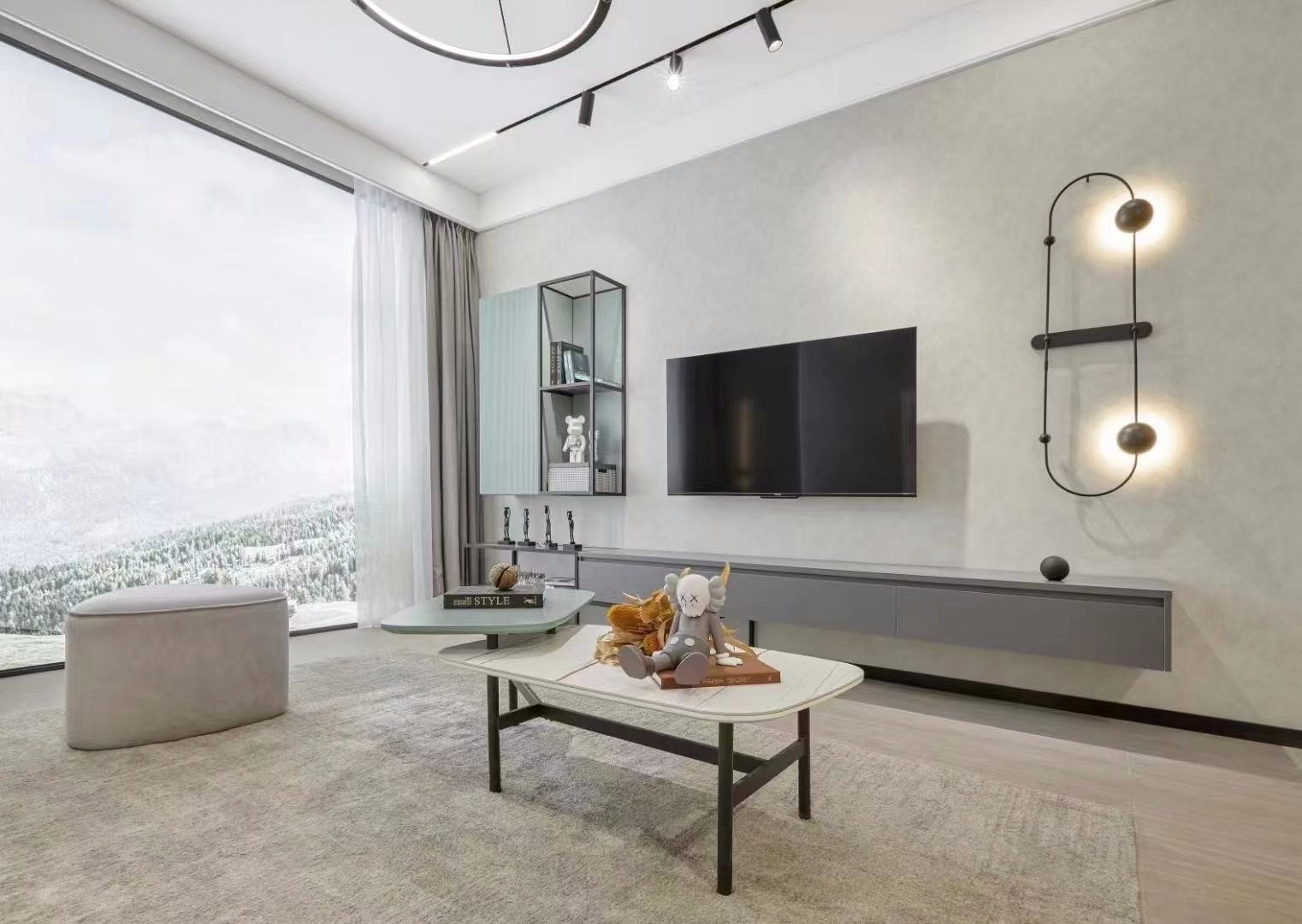电视背景墙做了电视柜与收纳柜 做成镂空的好打扫卫生