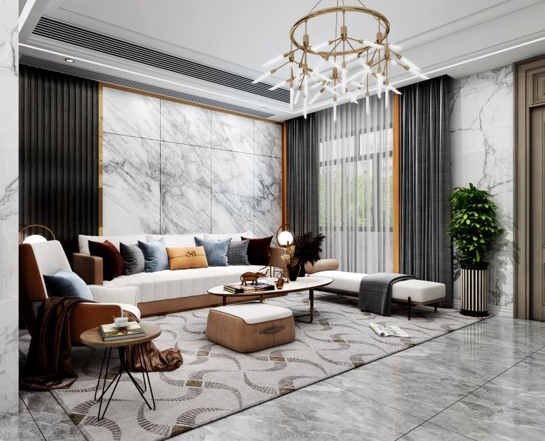 客厅墙面选择大面积的大理石上墙