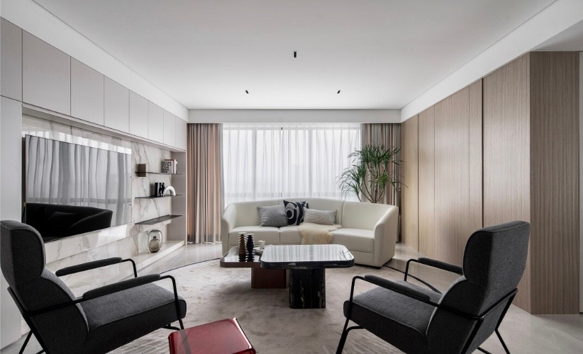 现代居所除了满足基本“住”的机能外,其扮演的角色,可以更加丰富,犹如游戏般,无论形体,机能,感官上,都能产生不同的趣味变化。本案是一个三代同堂的项目,男女屋主和一个可爱的儿子,还有父母双亲,三世同堂,共享天伦之乐。所以在设计上,注重简单大方,通过木饰面和适当留白来营造家的感觉,让人一进门就感觉到温暖舒适。收纳上,考虑到屋主一家需要收纳的东西较多,所以各个区域都设计了储物空间。