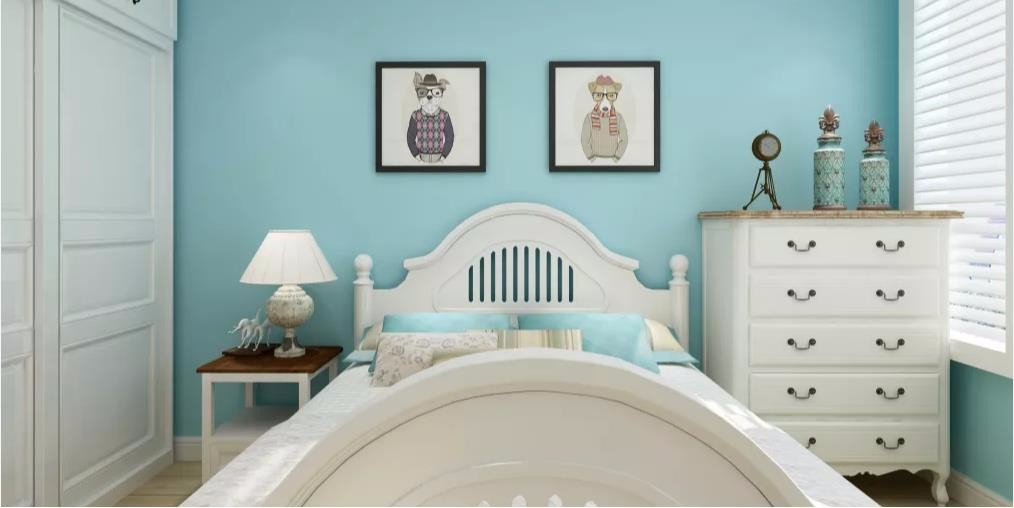 次卧儿童房用明亮的淡蓝色为主色,蓝色搭配白色是非常干净纯洁的搭配色,适合儿童的成长。