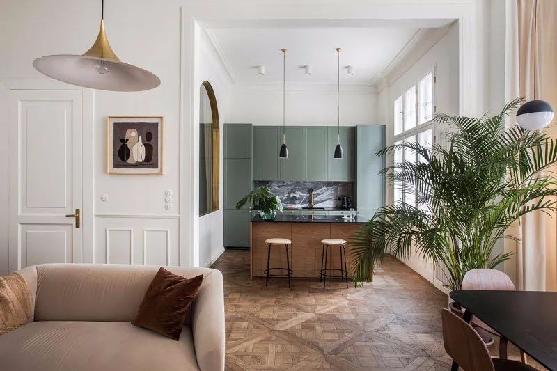 这个86m²的公寓空间位于市中心,是一栋1912年建造的住宅。设计师保留了原来部分的装饰,结合现代的家具,古典的内饰与色彩,重新打造出一个优雅魅力空间。