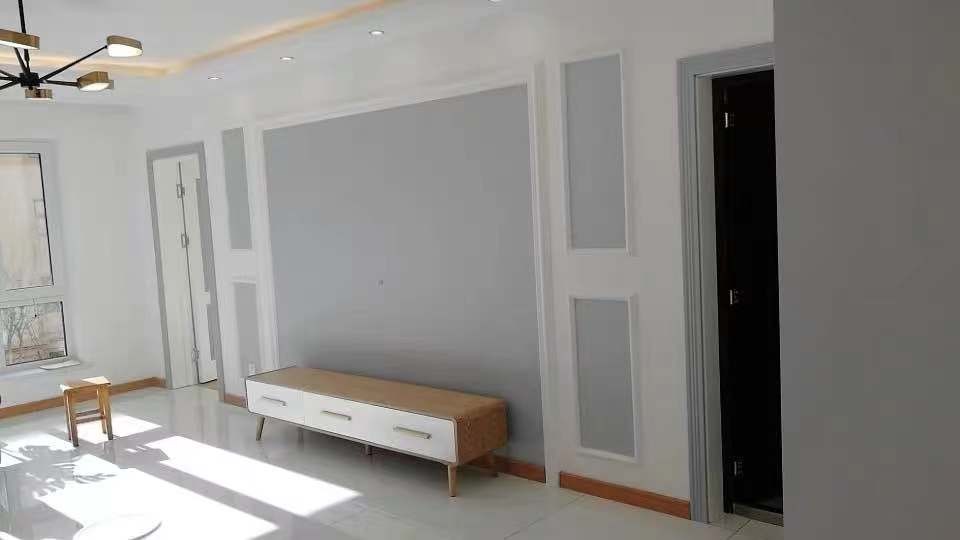 客厅做了电视背景墙,灰白结合,配上原木色墙柜,有点简欧风,清新浪漫。