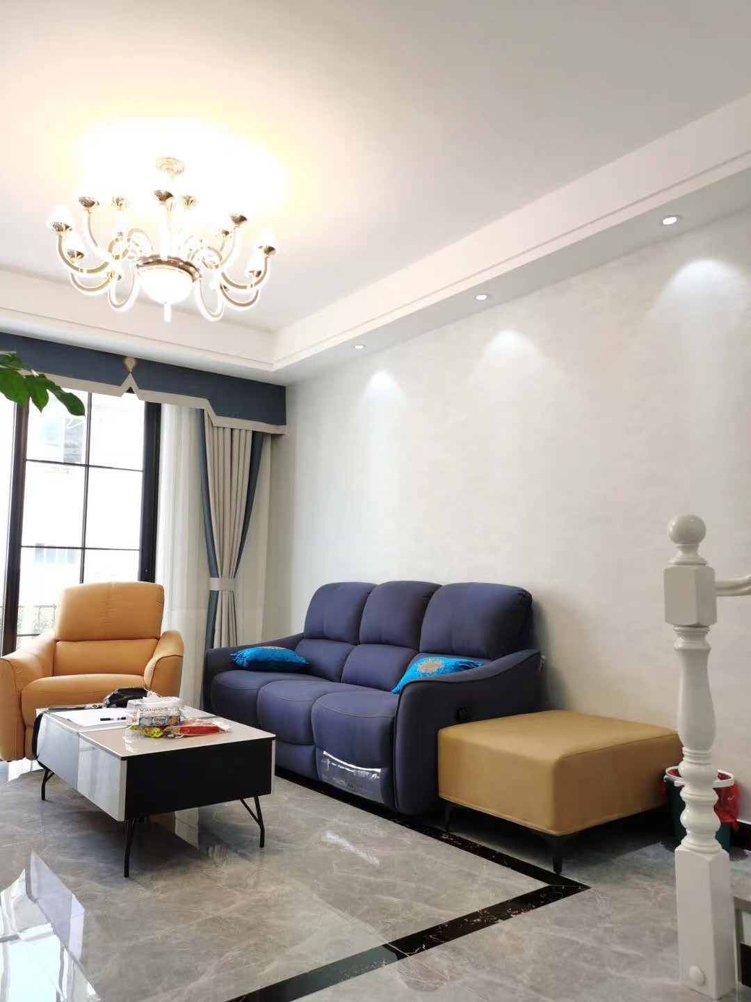 这是一套135平米的美式风格三室两厅,家具和饰品的选择更是给人与众不同的感受,既透露着休闲舒适的感觉又散发着沉静古朴的气息,这些都为家增添一种奇妙的温馨感。褐色的真皮沙发、实木家具,给淡雅的空间氛围增添了几分夯实笃定的意味。