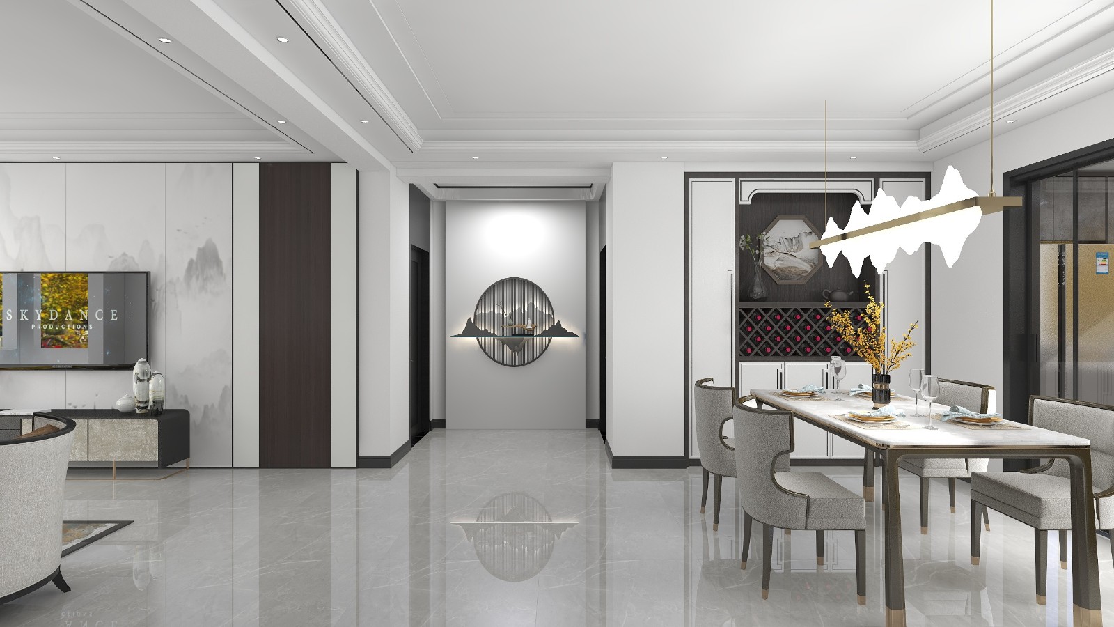 新中式的线条装饰了整个空间