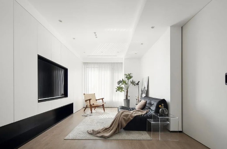 卫生间整洁线条干净利落,极简暗装入墙式水龙头。