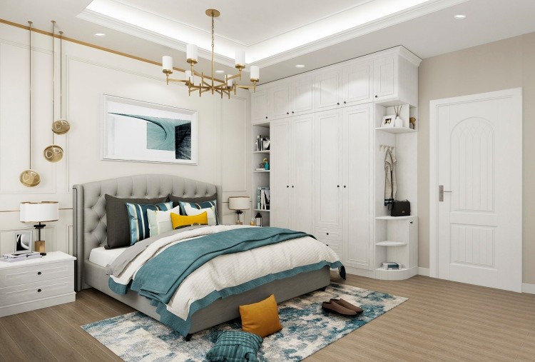 床头柜和衣柜的结合,充分利用空间,解决 衣柜干涉问题。