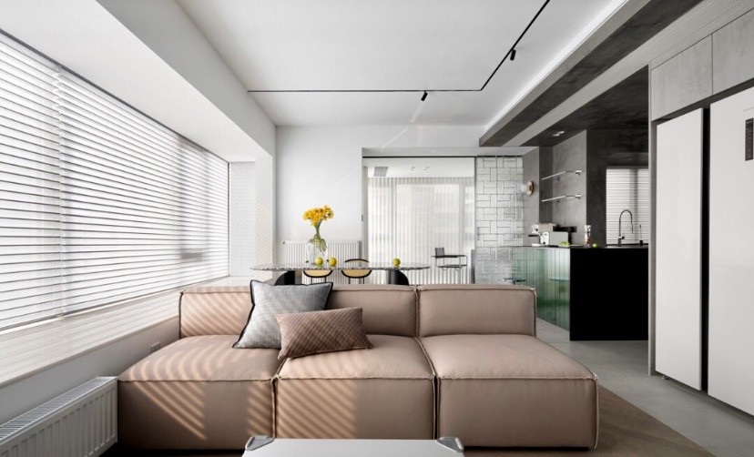 业主是一名律师,对于家希望是自在舒适的,很放松、轻巧的一个状态。所以对于这个家我们就是“打开”,各个空间都保有自己的独立性,但又是相通的,将通透做到***。同时发挥房子本身的优势,客餐厅一整面的窗户不设任何阻拦,更让整个空间通透清澈。房子不仅是两个人住,还有两只***的柴犬,狗子在这样开阔的空间里也可以随便撒欢,超幸福的“一家四口”啊!