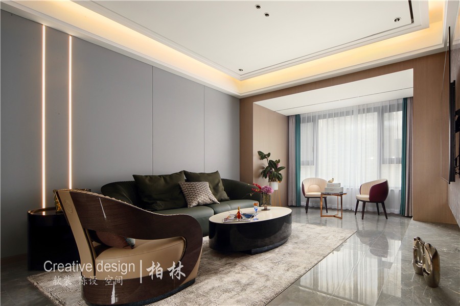 精装修楼盘,因为质量和风格业主不满意,拆了重新装修的,全案设计,业主玲包入住。轻奢风格。