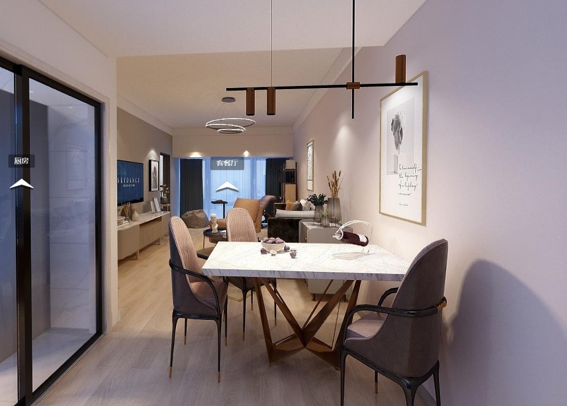 入户花园面积大,打通成为餐厅。
