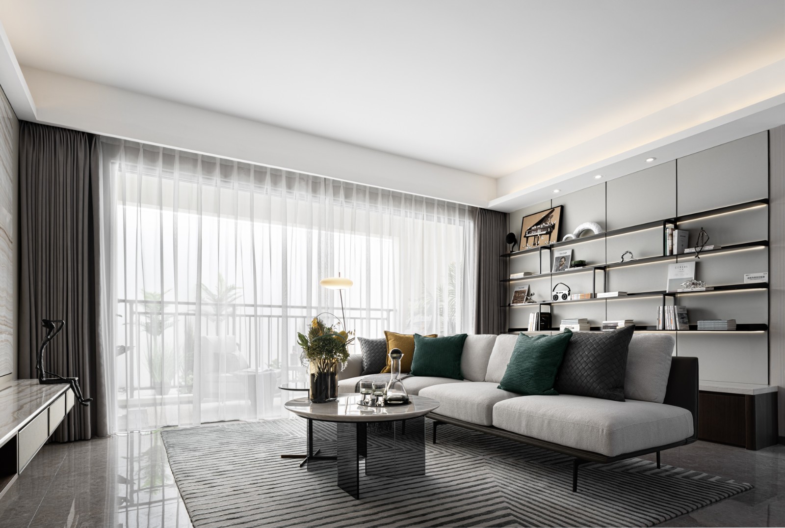 整体方正的空间布局,实现了视野的叠加,落地的全景光影搭配通透的闲适布局,给了空间节奏和秩序,足够拓阔的自由,才是***入微的体验。