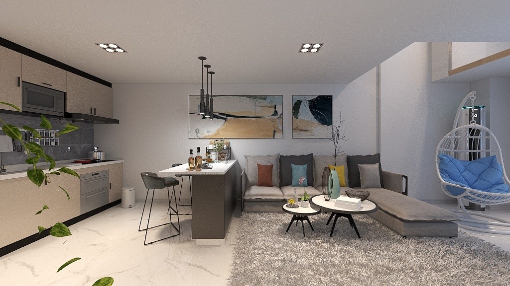 复式单身公寓,公寓是未来年轻人的主要市场,温馨的小两居也很棒呢。楼下空间做生活区,设立厨房、卫生间、客餐厅功能,现代简约风格,客厅做了小餐厅,让小两口生活更有生活感觉呢。卧室在二楼,做一落大衣柜,满足女主的需求,1.8m大床更舒适。中空大吊灯,照亮整个空间。这样的公寓你喜欢嘛?
