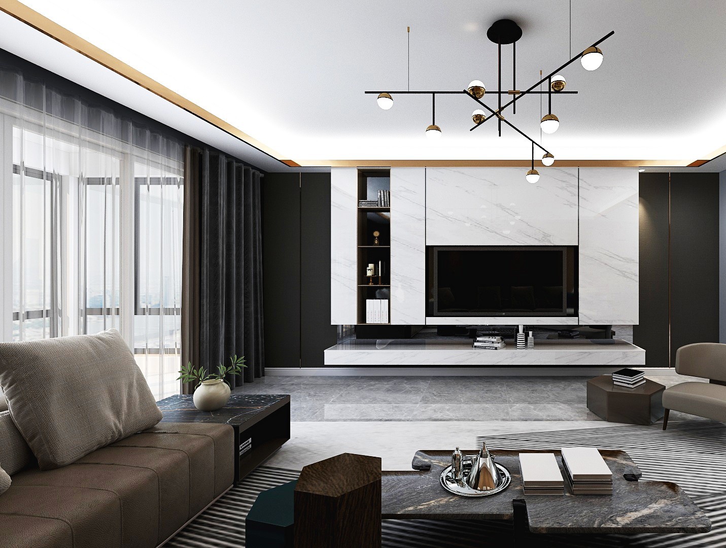 现代简约加上低奢元素让空间大气而奢华。