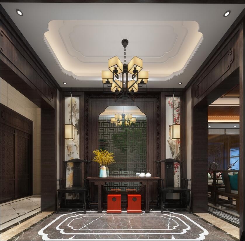 门厅(陶瓷、装饰壁画、中式案几)