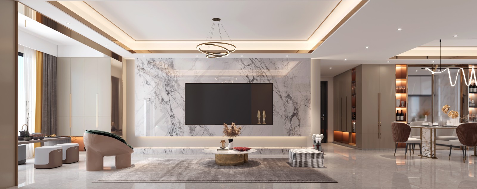 餐厅的设计更为别致,开放式的客餐厅,使空间显得更加明亮通透。