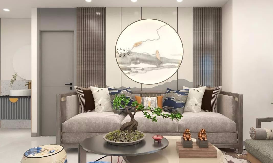 客厅沙发背景墙的设计不同于中式风格,打造出了一种时尚而简约的美感