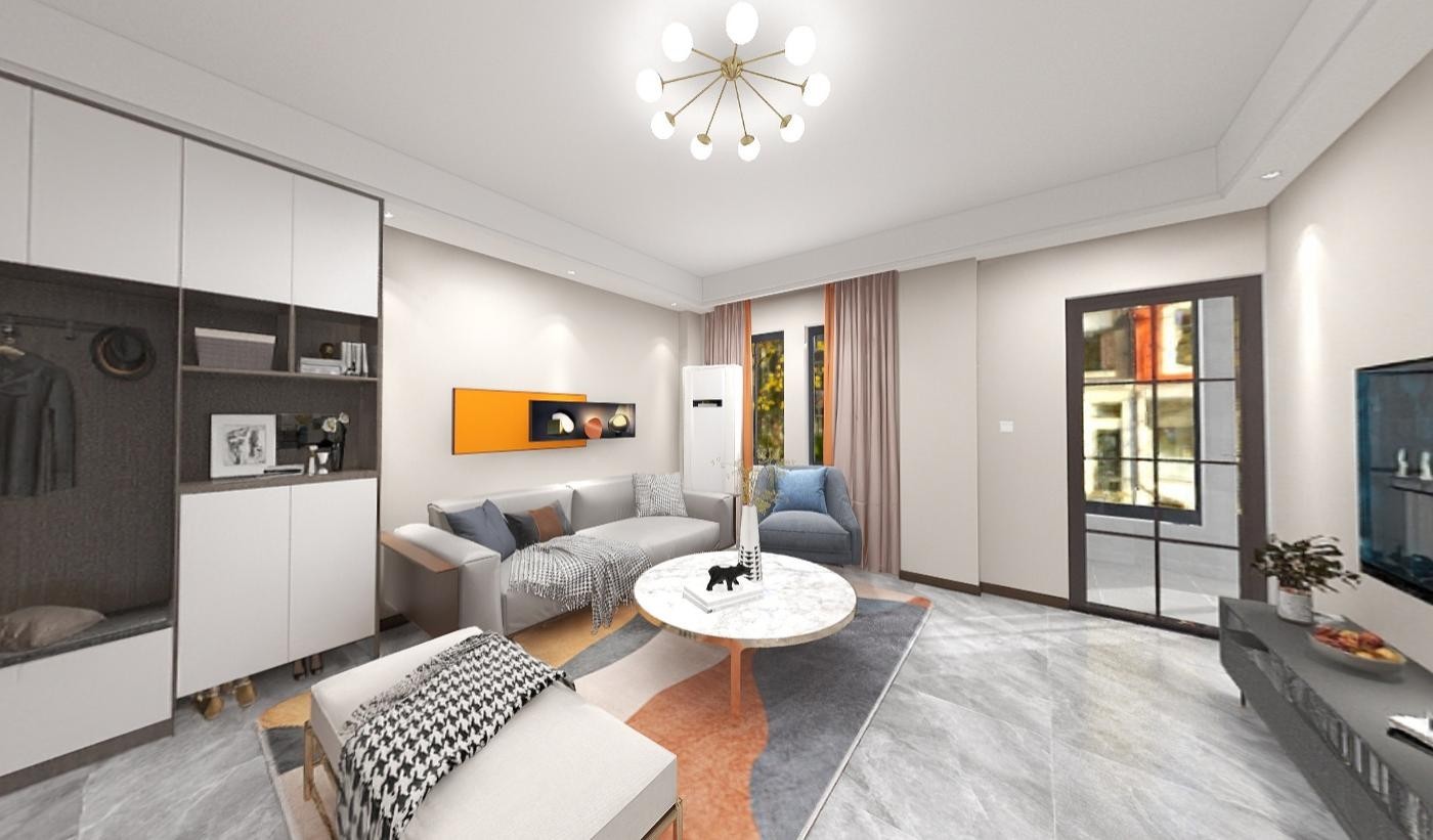个性的红黄蓝,客厅、餐厅、厨房一体贯通,空间瞬间流动起来。