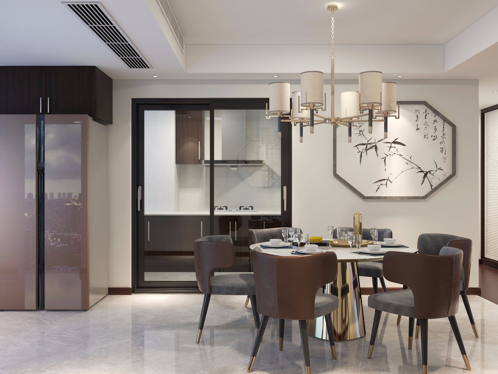 餐厅放置了圆桌,方便家人聚餐时使用。