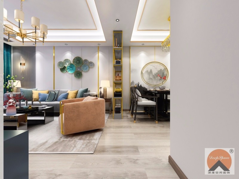 新中式风格,硬装的金属质感材质加以软装的合理搭配使中式风格瞬间活跃
