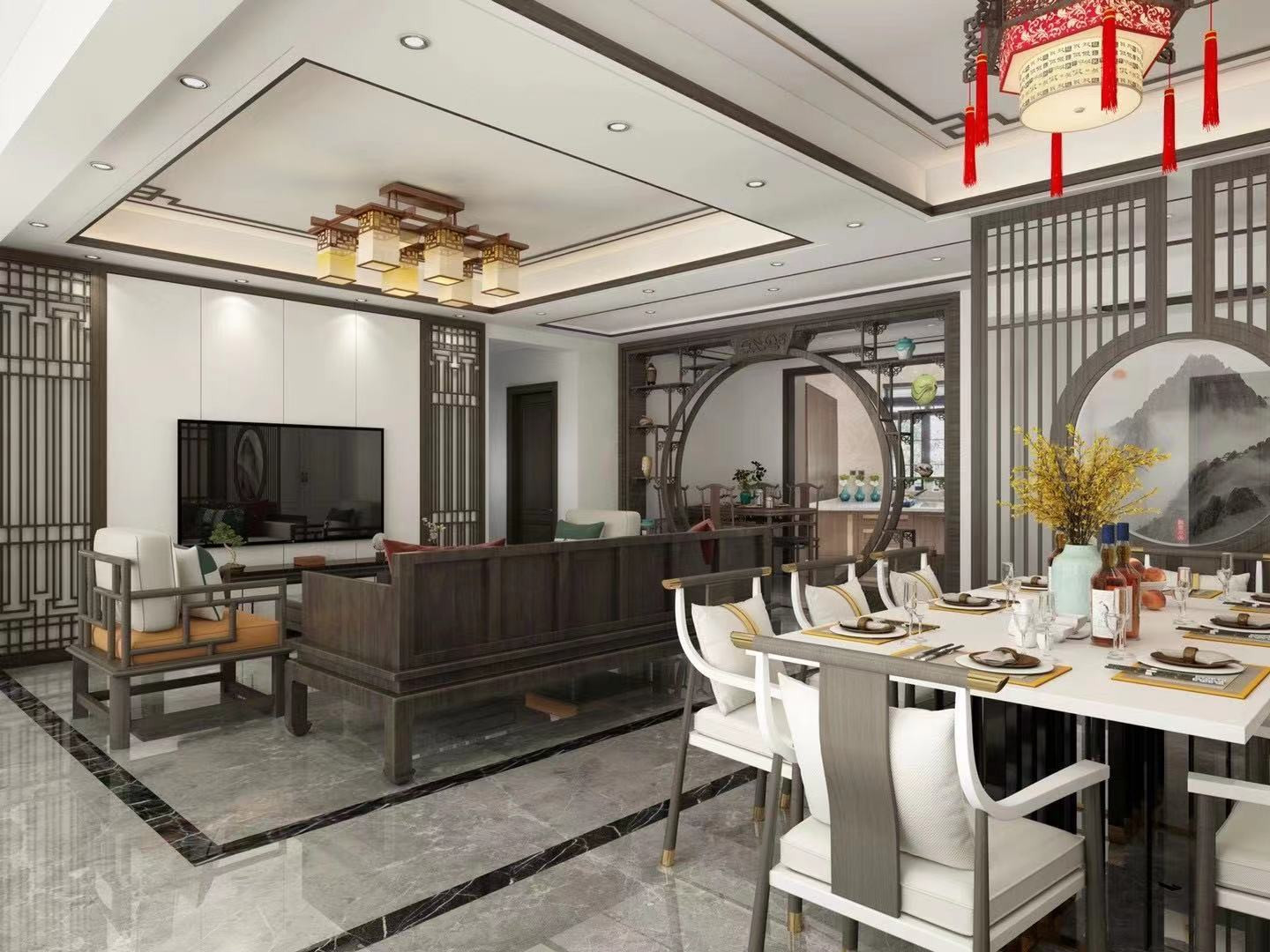 雅居乐花园,大平层新中式风格 极具沉静感空间的主调,质感沉厚的现代家具,抽象时尚的艺术装置,流散出新奇而前卫的艺术气息。 简约而凝练的山水元素,肆意糅合于室内各处,行构出冷静非凡的气质,带来多重感官体验。 沉稳的灰调、洁净的白色、极具质感的棕色,在富有节奏层次的韵律中写就冷静而简雅的气质。