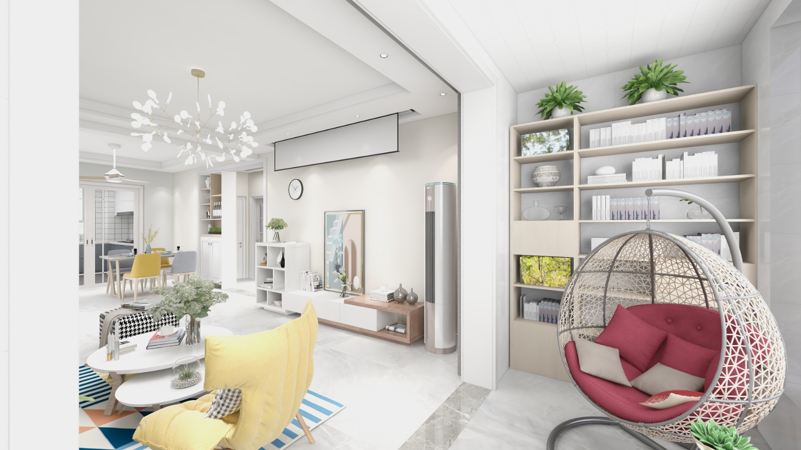 年轻人不看电视,要投影仪,简单的乳胶漆搭配电视背景墙,肤色搭配沙发背景浅灰色,时尚感增加
