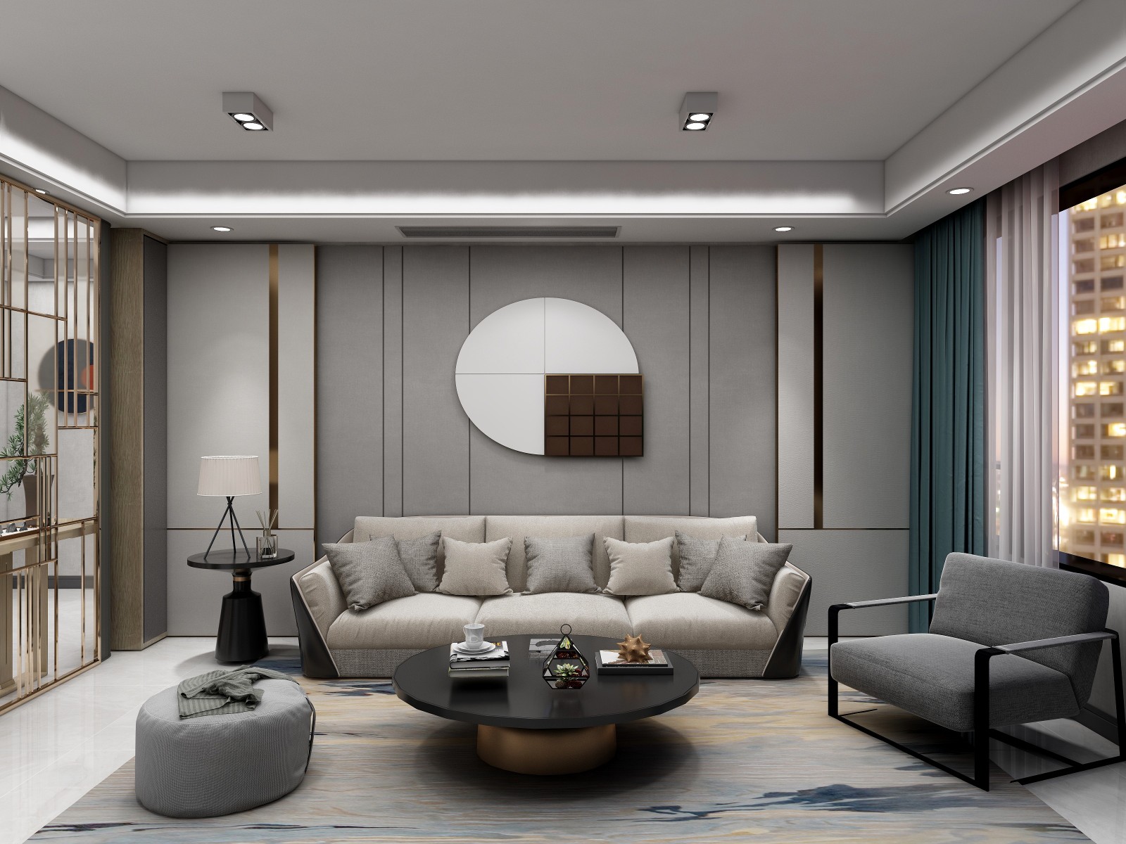 客厅采用石材和展示柜衔接,这样电视背景的元素比较强 合理解决收口问题。
