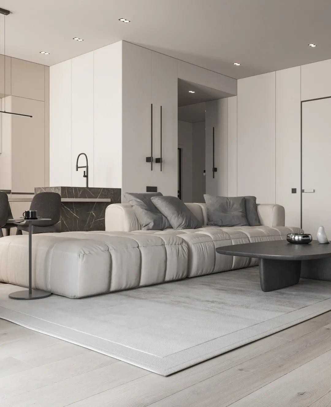 92㎡的居家公寓,设计格调精致细腻,营造了一种静谧、休闲的居家生活氛围。