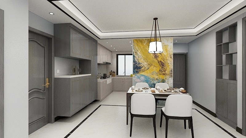 厨房做了U字型设计,操作空间更大,上下吊柜增加储物