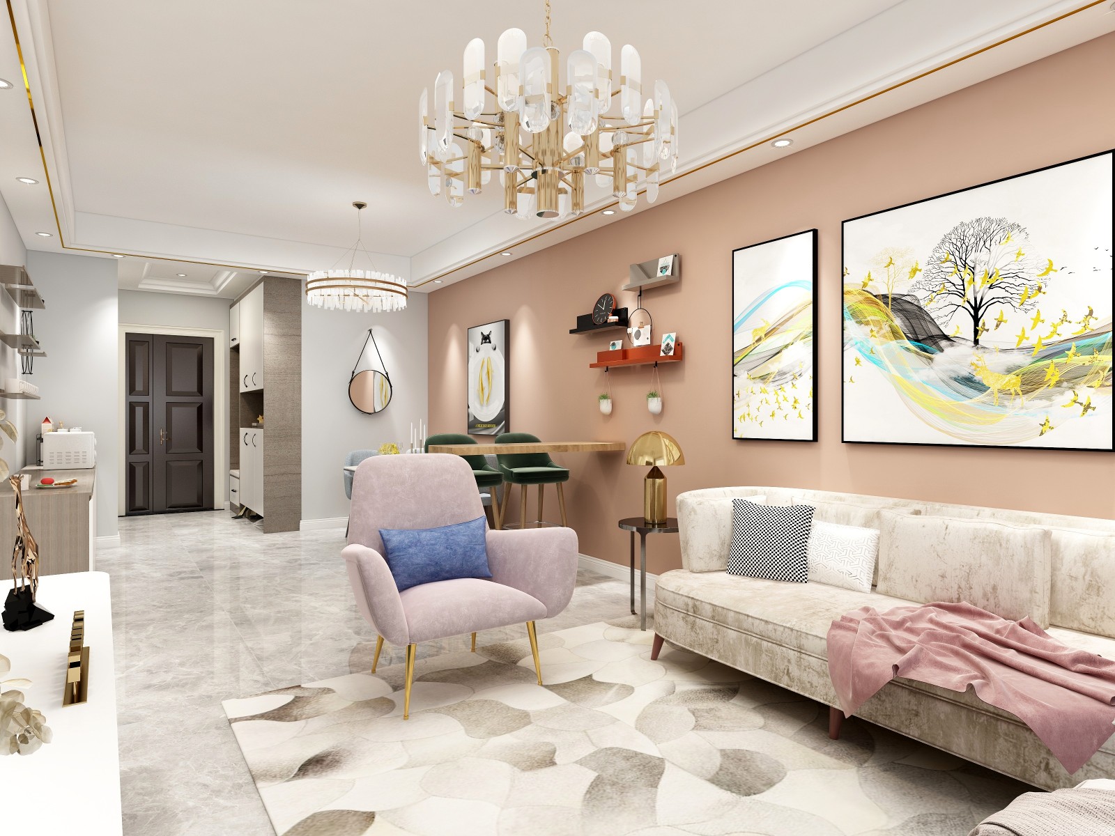 室内整体空间中不可缺少的建筑构件如柱子墙面等,结合功能需要加以装饰,可共同构成完美的室内环境。