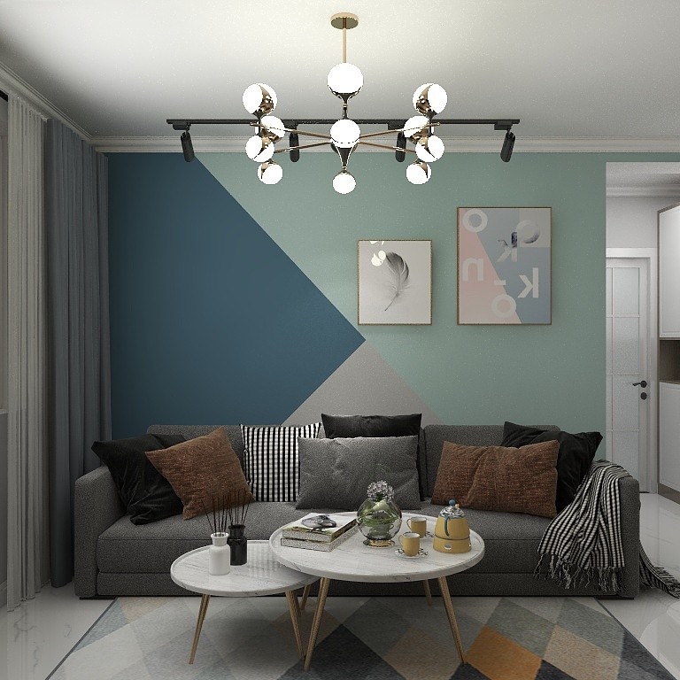 背景墙运用了三个颜色拼在一起做的一个造型,看起来不单调