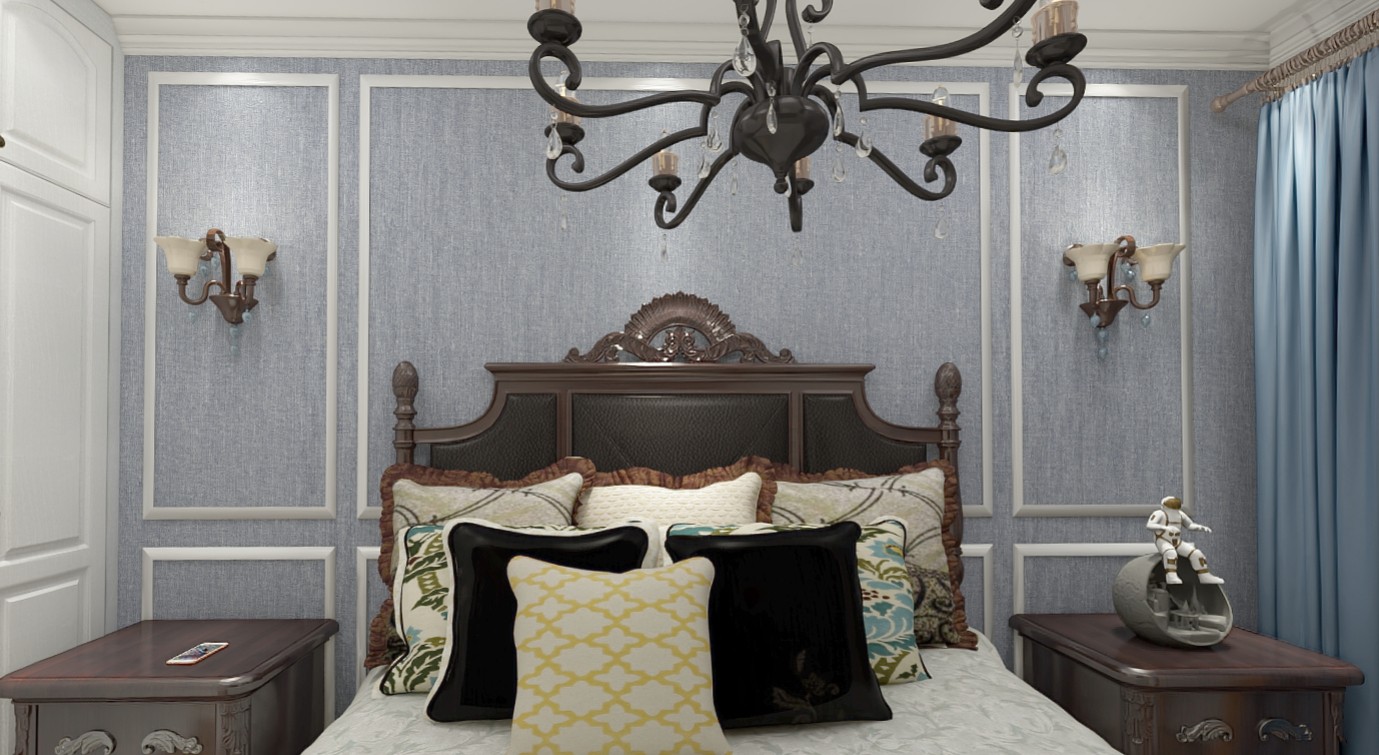 石膏板蓝色硅藻泥涂料加金色金属线条