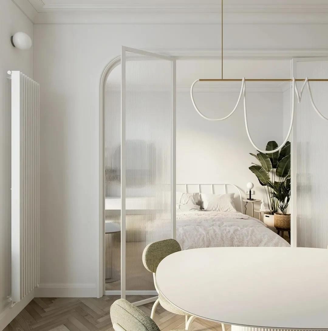 卧室与客厅之间采用长虹玻璃折叠门做隔断,兼顾隐私和采光,让室内明亮通透。