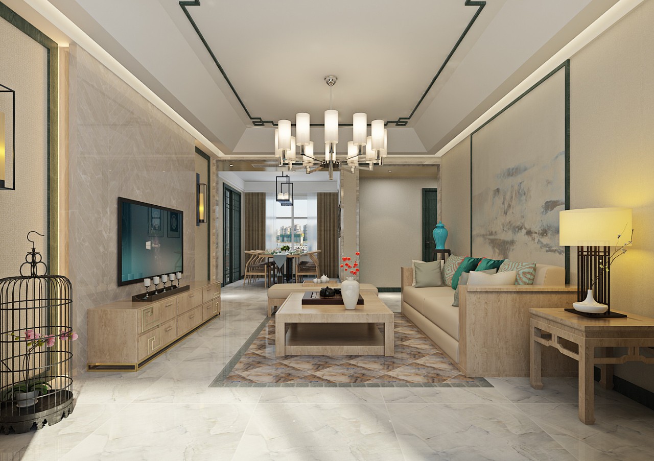 整个客厅空间不堆砌奢华,低调展示中式的意境之美,在虚实相生的情景之中,活跃着生命律动的韵味。