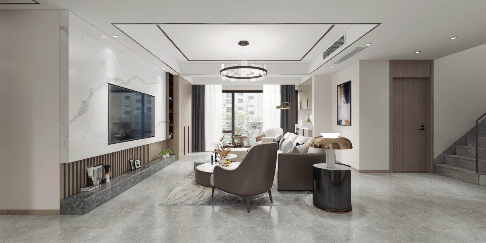 敞开式的客厅让人视野开阔,灰黑的色彩搭配让人倍感幸福与欢欣