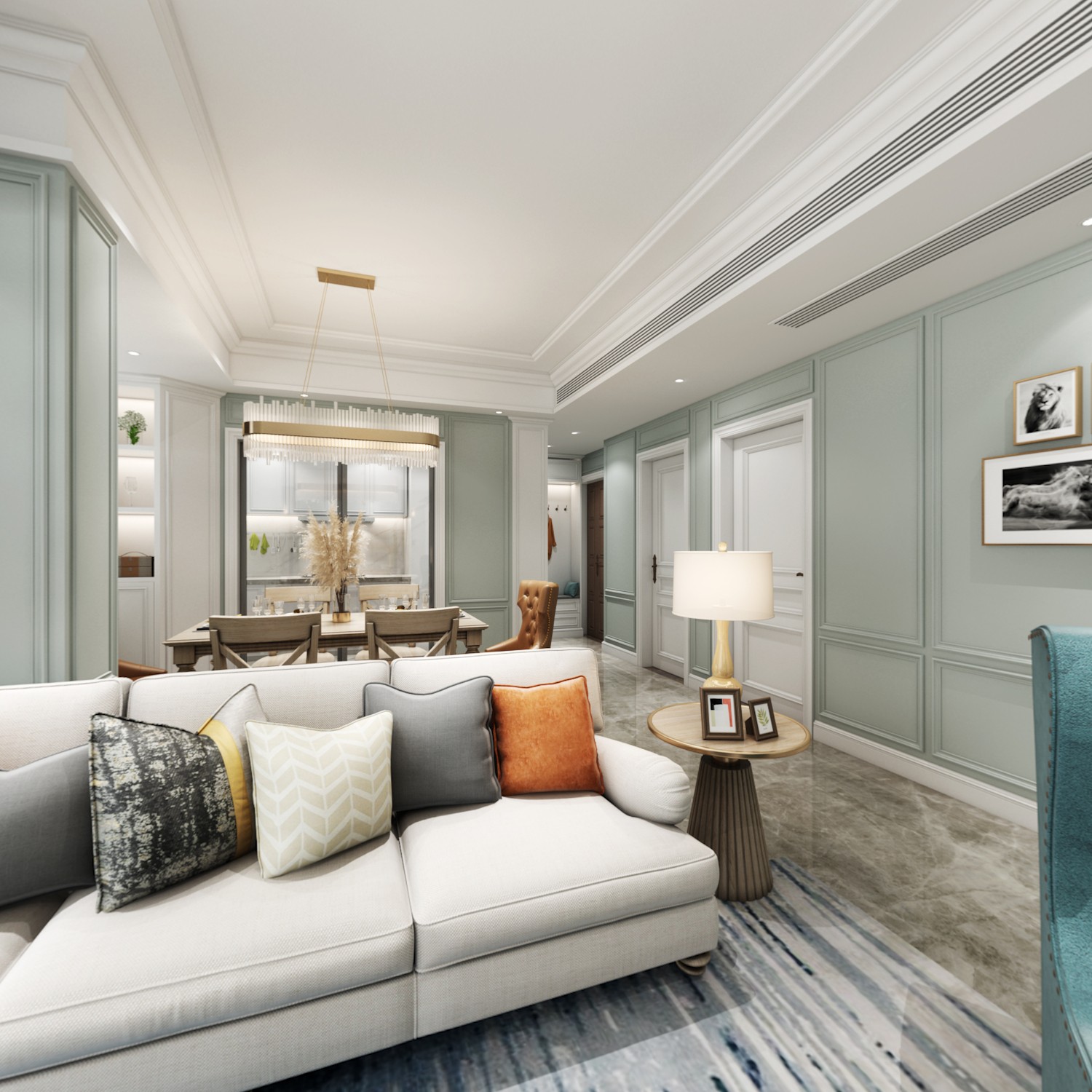温馨的豆青色,整体看起没有怆痛美式那么古板。