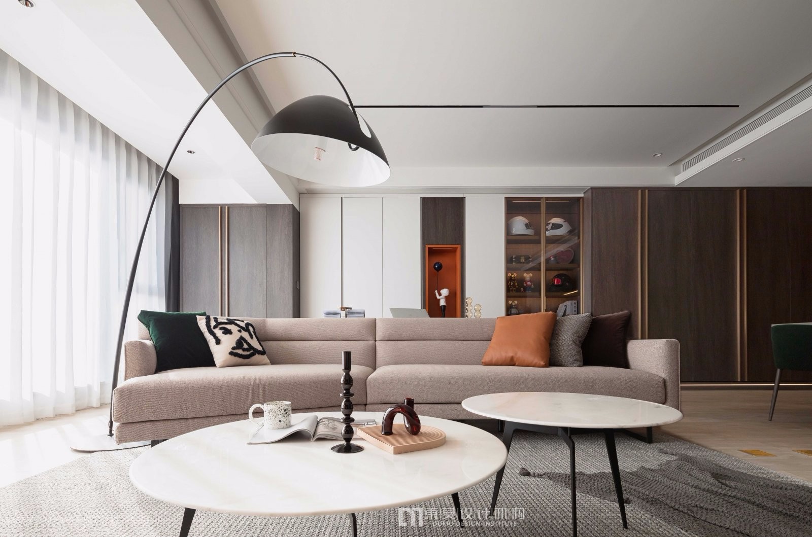 色彩随着日光发生变化,从入口生津到回味 体会的从来不止是一颗柠檬 从阳台慢步至岛台前,客厅成为了链接“岛屿”间的重要之地,几步路却成为花园式的一处一景色。