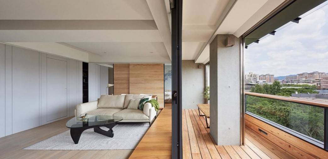 让自然带入空间内也将各个空间串联起来,房间床头如画般纹理的大理石墙面