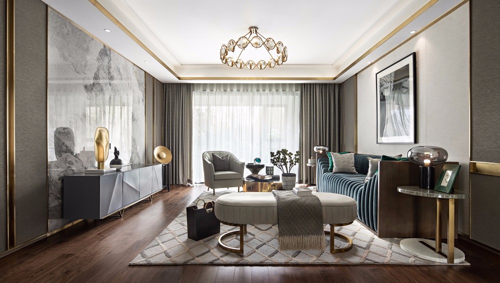 轻奢风格,大多以简约的硬装设计为基底,采用自带奢华气质的大理石、金属、玻璃、镜面等元素,为空间缔造出丰富的层次感,从而彰显了一种高品质的生活格调