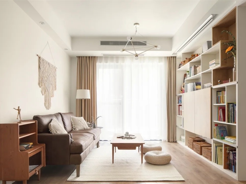 本案是一套95平米的小三居,屋主一家五口,三代同堂,夫妻俩喜欢读书、旅行,有个可爱的小女儿,并与父母一同居住。主人希望家里简洁舒适,既有文艺气息,又干净实用;既有孩子的活动空间,又能让老人安静的休息。温馨平和的日式风格,极大的符合了主人的要求,室内整体以自然环保的原木材质为基调,有着清新自然的舒适风格,而且兼备了很强的收纳功能,实用合理,方便打扫。