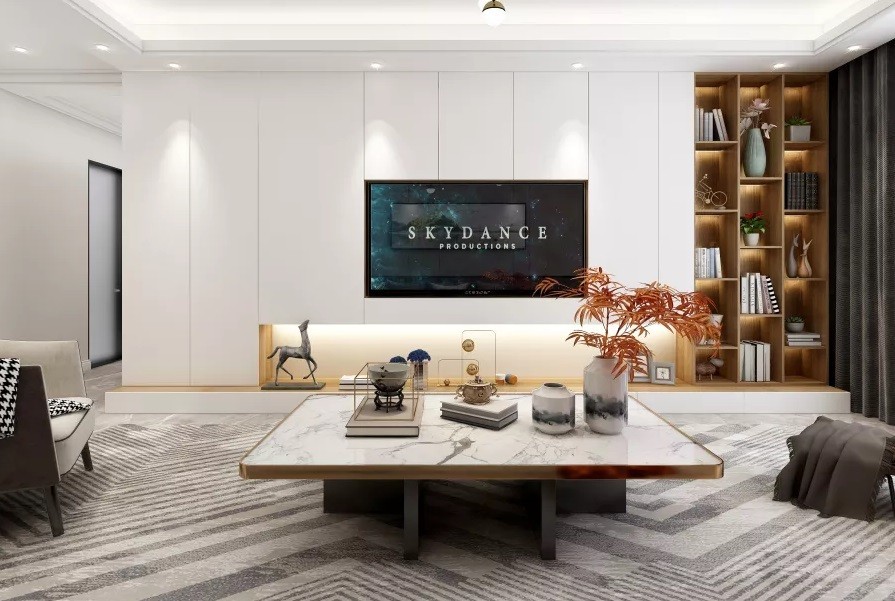 电视墙简单的亚克力造型,白色为百搭色,不会过时。