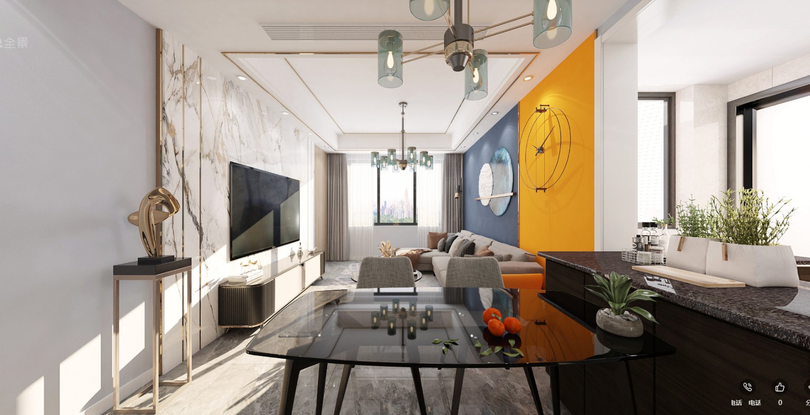 此房为开放式厨房户型,餐厅看向客厅方向